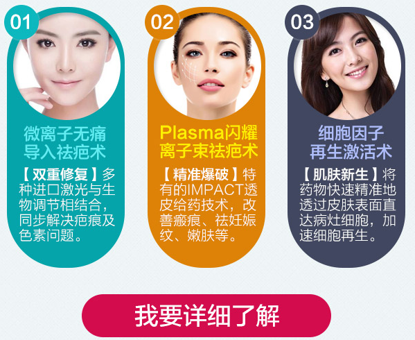 "微离子多维再生祛疤体系"是根据微离子无痛导入祛疤术、plasma闪耀离子束技术、细胞因子再生激活技术等多种祛疤联合研创的一种非手术祛疤新技术。